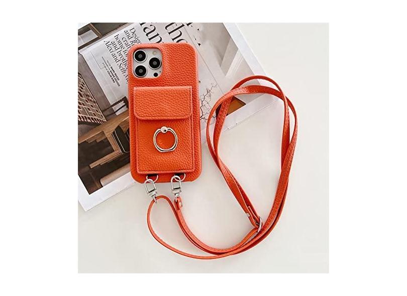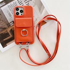 Carteira com Alça de Pescoço Crossbody Capa para Cartão de Telefone para iPhone 14 13 12 11 Pro Max Mini X XS XR 7 8 Plus Capa de Couro, Laranja, Para 7Plus ou 8Plus