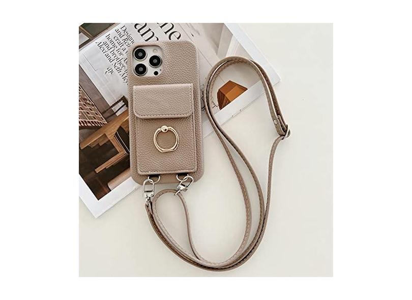 Carteira com Alça de Pescoço Transversal Capa de Telefone para iPhone 14 13 12 11 Pro Max Mini X XS XR 7 8 Plus Capa de Couro, cáqui, para iPhone 14