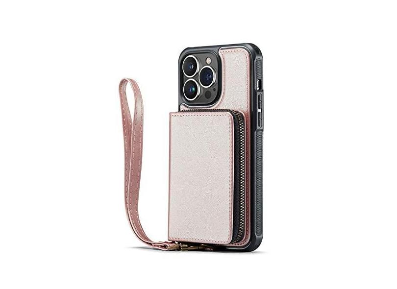 Carteira com zíper capa para telefone com cartão para iPhone 14 13 12 11 Pro Max Couro Flip Stand Cover para Samsung Galaxy S22 Plus S21 Ultra, ouro rosa, para Samsung S22 Plus
