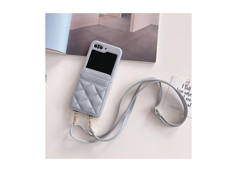 Carteira crossbody com porta-cartão capa de telefone para Samsung Galaxy Z Flip 5 4 3 Flip5 Flip4 Flip3 5G Capa de couro PU à prova de choque, azul cinza, para Galaxy Z Flip5