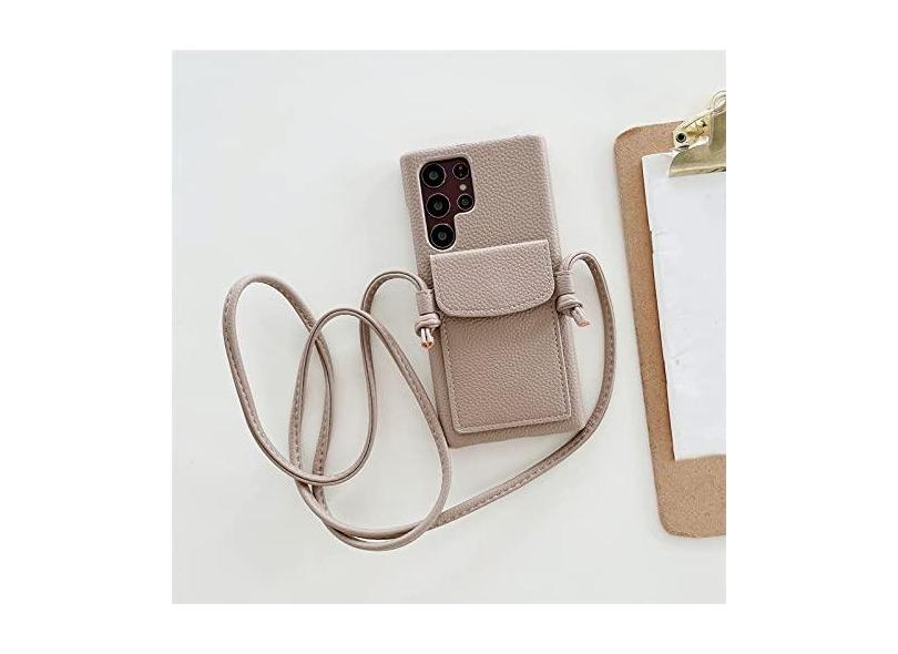 Carteira de couro com tira transversal para Samsung S22 Ultra S21Plus S20 S10 S9 S8 Note 20 10 9 8 Slot para cartão Lanyard capa macia, cáqui, para S20 Ultra