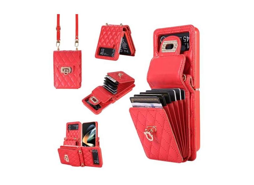 O menor preço encontrado no Brasil para Carteira de couro porta-cartões capa de telefone para Samsung Galaxy Z Flip 5 Filp 4 Filp 3 compartimentos para cartões Bolsa crossbody capa traseira de metal, vermelha, para Galaxy Z Flip 4 atualmente é R$ 204,10.