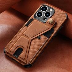 Carteira de fibra de carbono com suporte para cartão capa de telefone para iPhone 13 12 Mini 14 11 Pro XS Max XR X 7 8 6 6s Plus SE 2 3 Capa de couro, marrom, para iPhone 12 Mini