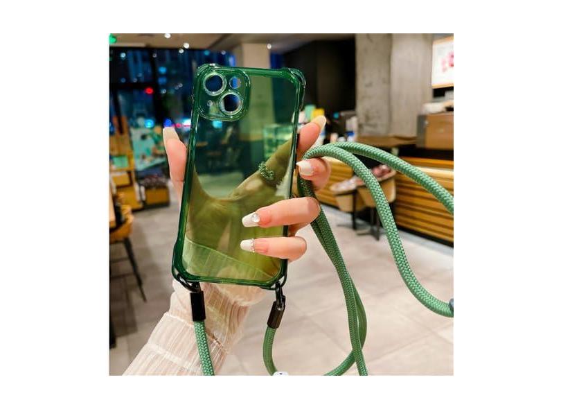 Colar crossbody cordão doce cor sólida capa de telefone macia para iPhone 15 Pro Max 14 Plus 13 12 11 alça com cabo capa à prova de choque, verde, para iPhone 14 Plus