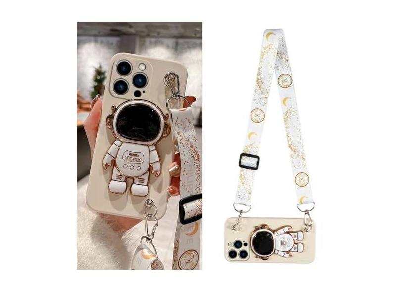Crossbody Lanyard Astronaut Bracket Phone Holder Case para iphone 14 13 12 11 15 Pro XS Max Mini XR X 8 7 6 6S Plus SE 2020 Capa, branca, para iphone 8 ou 7