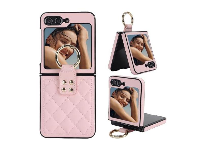 Ephoou Capa para Samsung Galaxy Z Flip 6 com suporte de anel, couro sintético romboide macio [proteção de dobradiça] capa fina durável antiarranhões à prova de choque para Samsung Galaxy Z Flip6