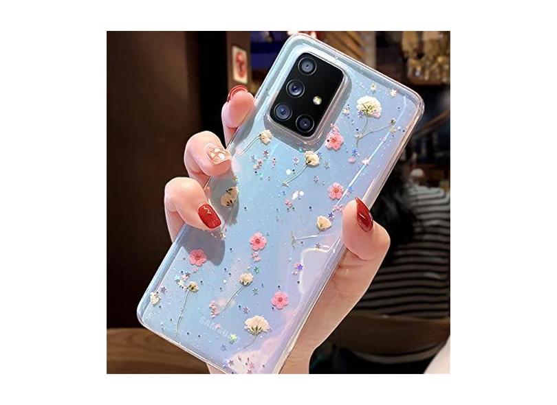 O menor preço encontrado no Brasil para Estojo de flores secas reais com glitter transparente para Samsung S21 Plus S21Ultra S10E A72 A52 A42 A32 A12 A21 A20S A91 A81 A90 A80 Capa macia, rosa, para A42 atualmente é R$ 135,60.