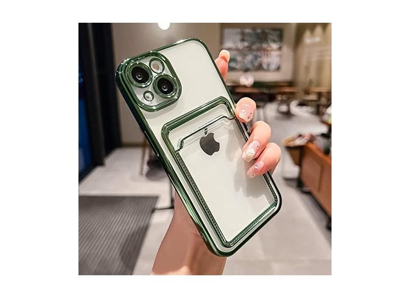 Estojo porta-cartões transparente galvanizado para iPhone 13 11 12 14 Pro Max 14 Plus Bolso para fotos Capa de silicone à prova de choque, verde, para SE2020 ou SE2022