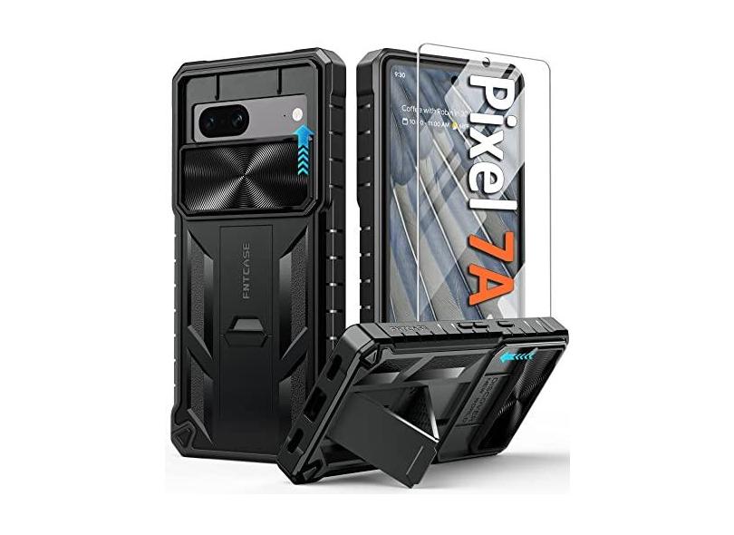 FNTCASE Capa para celular Google Pixel-7a: Capa de celular de proteção contra quedas de nível militar com suporte e slide | Amortecedor protetor resistente à prova de choque texturizado | Protetor