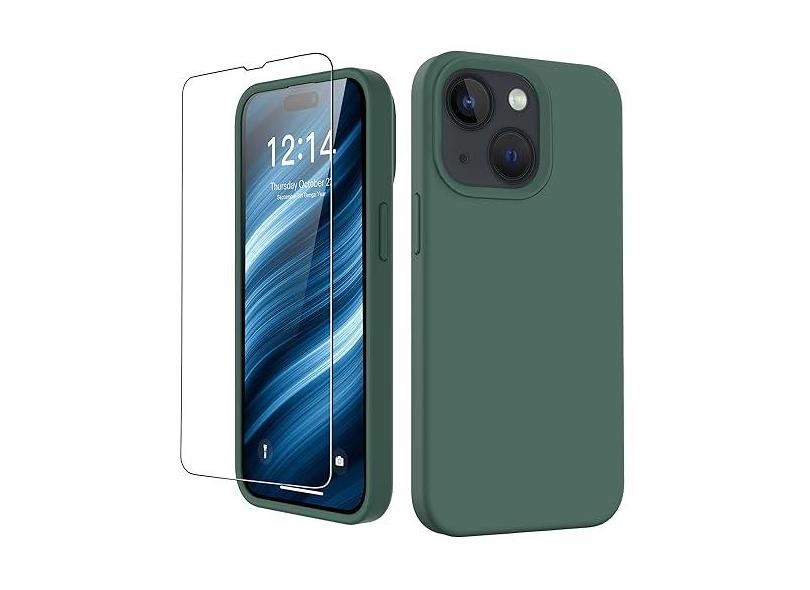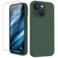 FUNMIKO Capa compatível com iPhone 15 com protetor de tela, capa de silicone macio e sedoso, projetada na moda para homens, mulheres e meninas, capa protetora para celular de 6,1 polegadas, verde