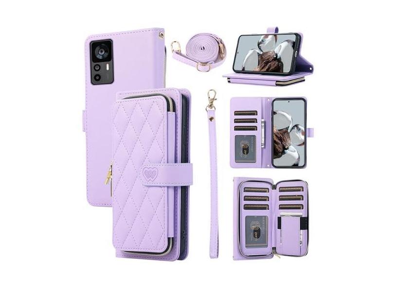 Furiet Capa carteira para Xiaomi 12T/12T Pro 5G com alça de pulso destacável, alça de ombro transversal, 9+ compartimentos para cartões, bolsa com zíper, luxuosa, couro PU, suporte para celular Mi T12