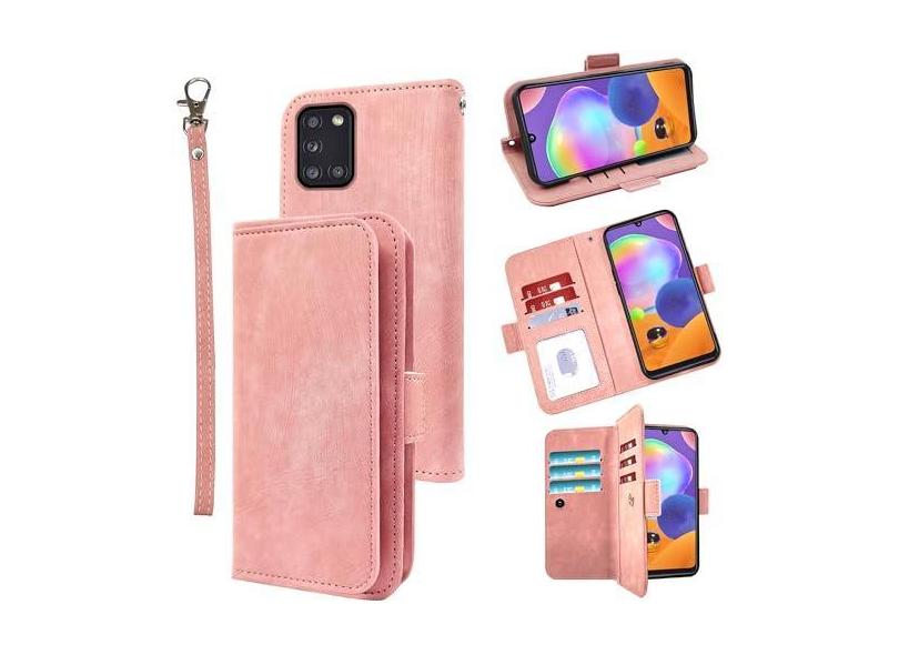 Furiet Compatível com Samsung Galaxy A31 Capa carteira com alça de pulso, 9+ compartimentos para cartões, suporte de couro PU, suporte para cartão, acessórios de corpo inteiro, capa de celular para A