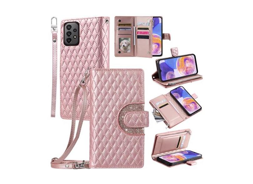Furill Capa de telefone para Samsung Galaxy A33 5G capa carteira com alça de pulso removível transversal alça de ombro 9+ compartimentos para cartões bolsa com zíper bolsa de couro PU de luxo com
