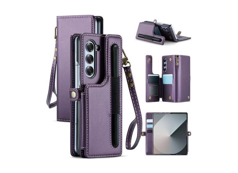 HAII Capa para Samsung Galaxy Z Fold 6, carteira multifuncional feminina e masculina com suporte, bloqueio RFID, fecho magnético, suporte para cartões, compartimentos para dinheiro, suporte para