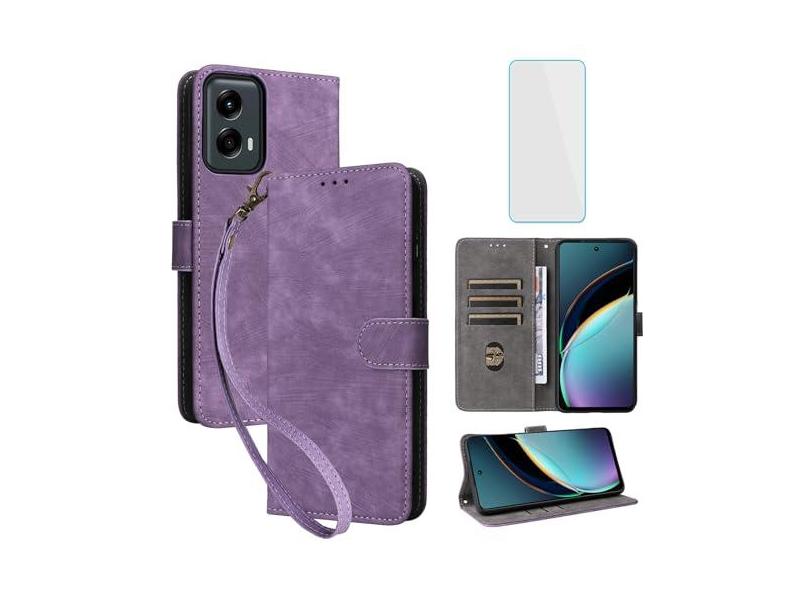 IUQXU Capa carteira para celular Motorola Moto-G-Play-5G-2024 / Moto-G-5G-2024 com protetor de tela [bloqueio RFID] Capa de celular masculina e feminina com suporte de 6,6 polegadas para Moto