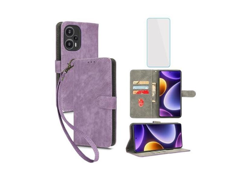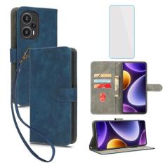 IUQXU Capa carteira para celular Xiaomi Poco F5 5G com protetor de tela [bloqueio RFID] Suporte de cartão flip de couro alça de pulso feminina masculina capa de celular para Xiaomi PocoF5 Poco F 5 5G