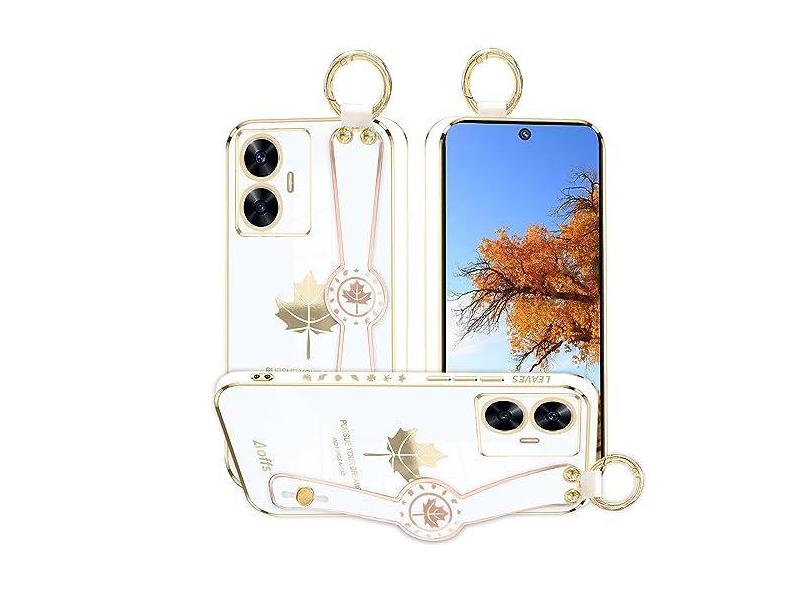 Kainevy Capa de telefone para Realme C55 capa estética de silicone à prova de choque para mulheres capa protetora Realme C55 capa de telefone fina com anel de pulso Starp design de folha de bordo