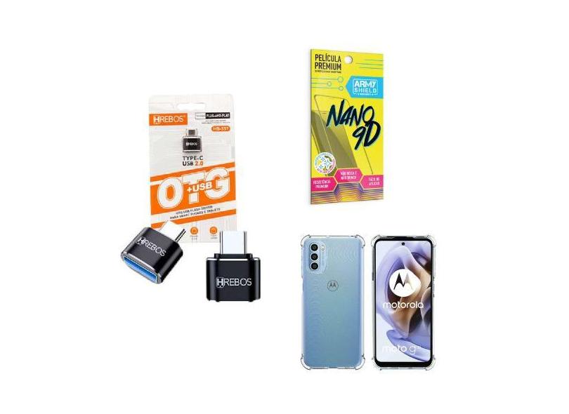 Kit Adaptador USB para Tipo C + Capinha Motorola G31 + Película 9D - H