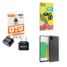 Kit Adaptador USB para Tipo C + Capinha Samsung A03 Core + Película 9D