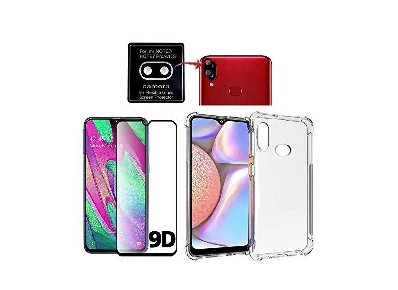 Kit Capa Antishock Compatível Samsung Galaxy A10s + Película 9D Vidro + Película Nano Flexível Câmera