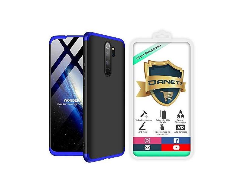 Kit Capa Capinha Anti Impacto 360 Full Para Xiaomi Redmi Note 8 Pro Tela 6.53Polegadas - Case Acrílica Fosca Com Película De Vidro Temperado - Danet ( com )