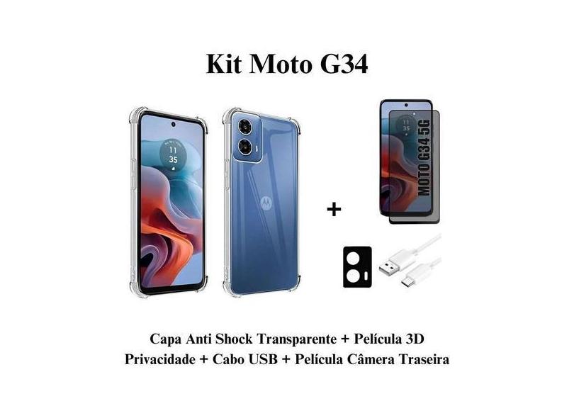 Kit Capa Capinha Transparente + Película 3D Privacidade + Película Câm