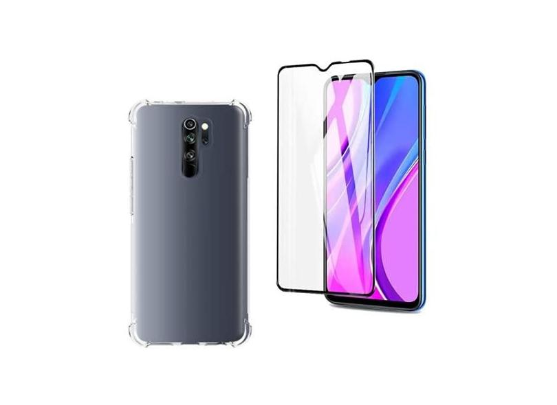 Kit Capa Protetora Compatível Xiaomi Redmi 9 com Tela de 6.53" Polegadas + 2 Película Vidro 3D 9d