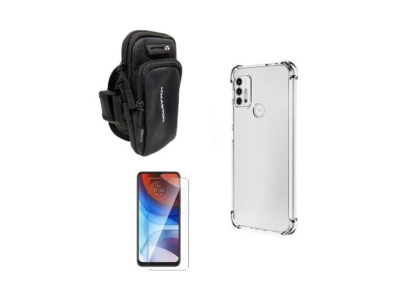 Kit Capinha Anti Impacto + Braçadeira Capa Porta Celular Para Corrida + Película Vidro Compatível Moto G10