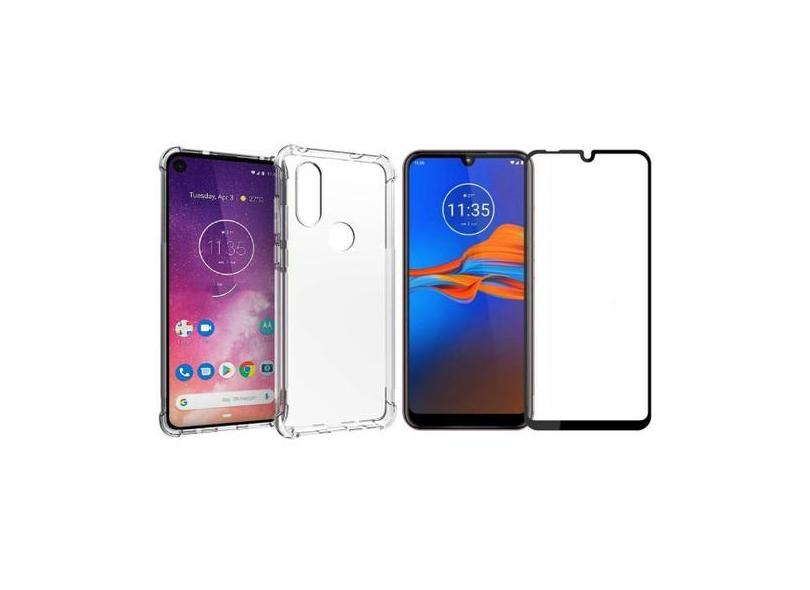 Kit Capinha Antichoque e Pelicula Vidro 3D Preta Moto E6 Plus - HRebro