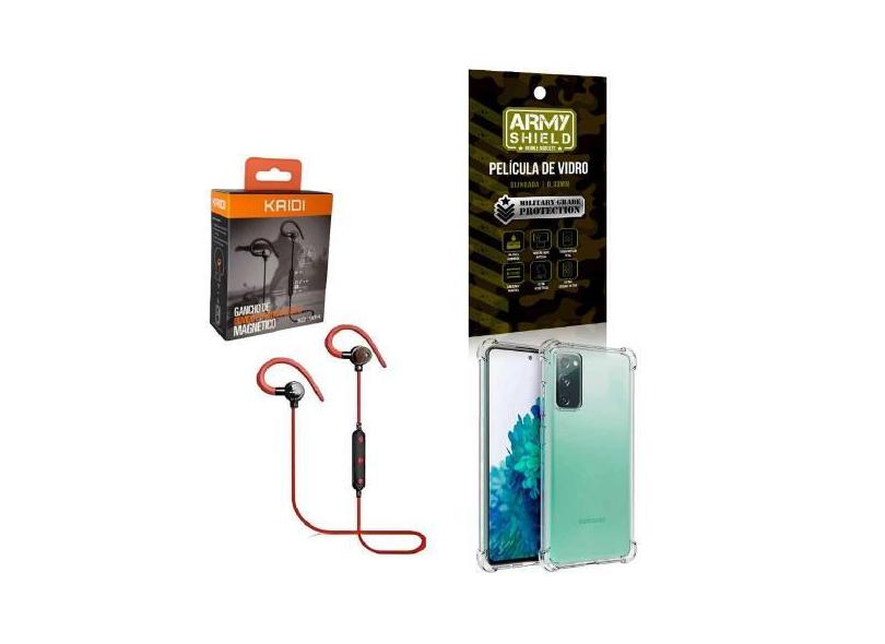 O menor preço encontrado no Brasil para Kit Capinha Samsung S20 Fe Fone Bluetooth Esportivo e Película de vidr atualmente é R$ 129,90.