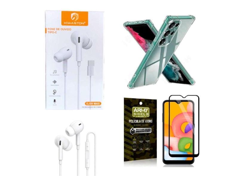 Kit Fone De Ouvido S23 Ultra Com Capinha E Película 3D