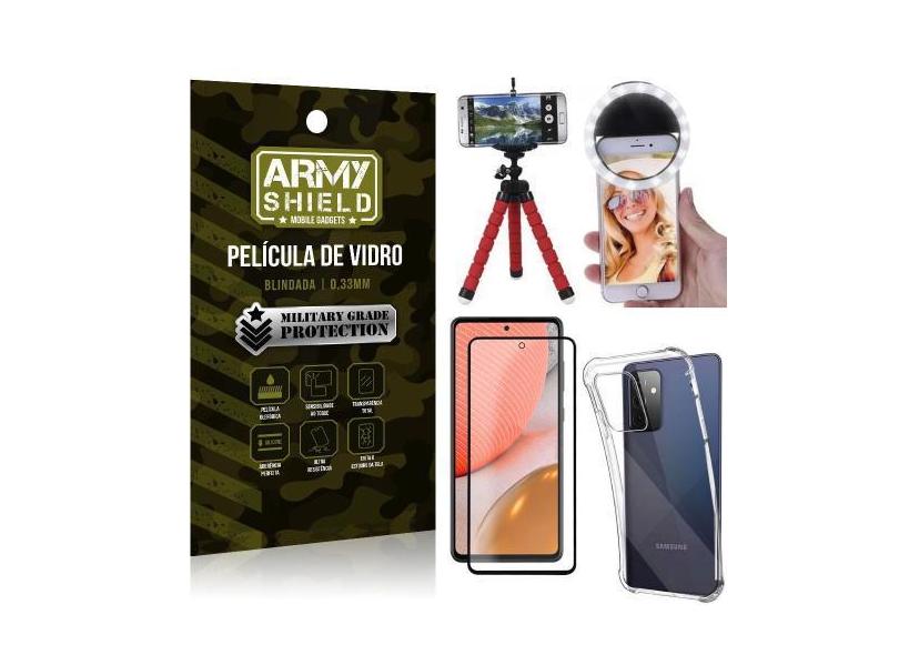 Kit Tripé Flex + Flash Ring Galaxy A72 + Capa + Película 3D - Armyshie