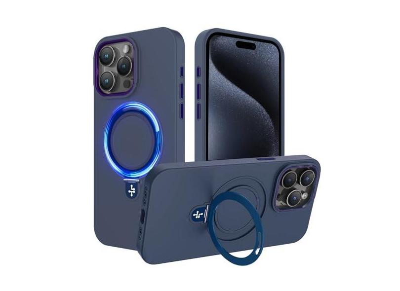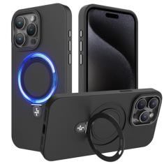 LAUDTEC Capa de silicone magnético invisível com suporte compatível com iPhone 15 Pro de 6,1 polegadas, [compatível com MagSafe] Capa protetora de lente flexível de silicone líquido macio com suporte