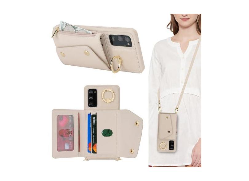 Lipvina Capa para Samsung Galaxy S20 FE com suporte para cartão e alça - Bolso com zíper, alça transversal, suporte para cartão de crédito, anel de suporte, linda capa carteira de telefone para