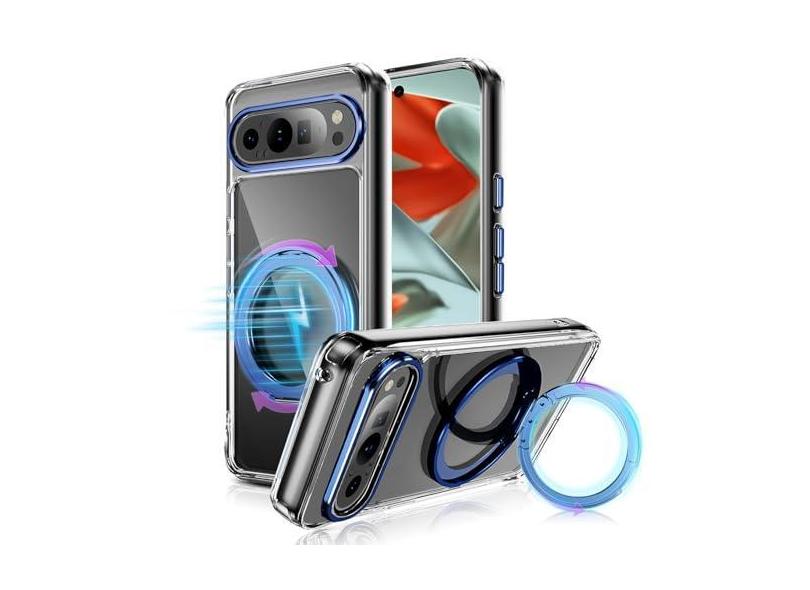 Lokyoo Capa magnética transparente para Google Pixel 9 Pro e Pixel 9 de 6,3 polegadas, [apto para MagSafe], [antiamarelo], [suporte magnético giratório de 360°] proteção contra quedas, antiarranhões,