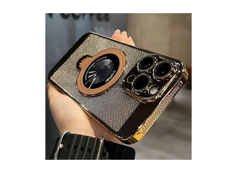 LOOBIVAL Capa magnética com suporte magnético de dissipação de calor de malha para iPhone 15 14 13 12 Pro Max [compatível com MagSafe] Capa fina protetora de câmera galvanizada com visualização do