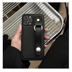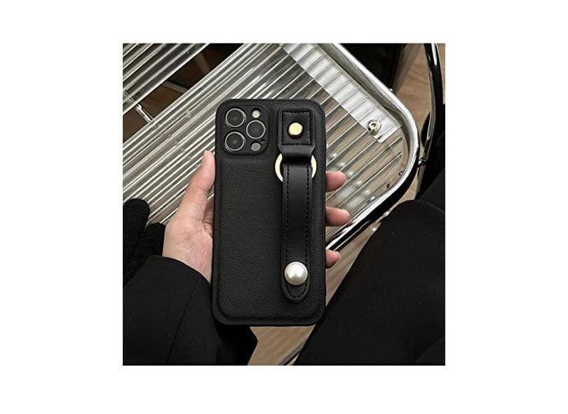Luxo sênior couro pérola suporte de pulso capa de telefone macia para iPhone 13 11 12 14 Pro XS MAX X XR 7 8 Plus MiNi SE 2 3 capa traseira, preta, para iPhone 11