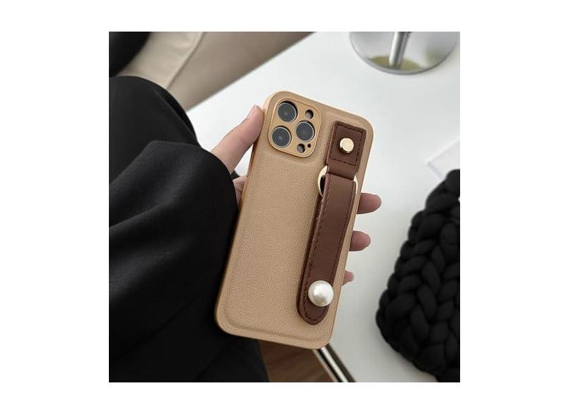 Luxo sênior pérola couro suporte de pulso caso de telefone macio para iphone 13 11 12 14 pro xs max x xr 7 8 plus mini se 2 3 capa traseira, marrom, para iphone 11
