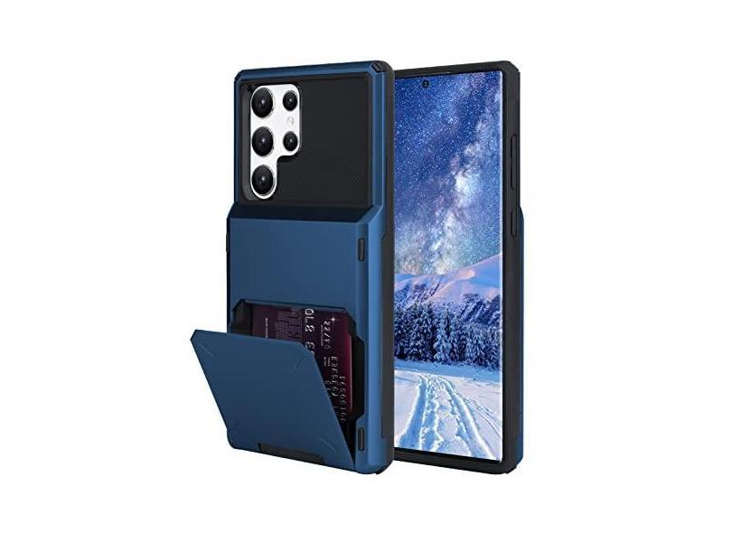 Marphe Capa carteira para Samsung Galaxy S22 Ultra com compartimento para cartão de crédito de 4 cartões de crédito à prova de choque, capa híbrida de proteção resistente, capa para celular compatível