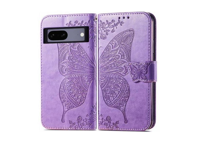 MEUPZZK Capa carteira para Google Pixel 7A, couro PU premium borboleta em relevo [suporte] [compartimentos para cartões] [alça de pulso] [flip fólio] [6,1 polegadas] capa de telefone para Pixel 7A