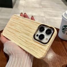 Moldura de lente de revestimento Capa de telefone com textura de grão de madeira para iPhone 14 13 12 11 Pro Max XS XR X 7 8 Plus SE Capa de silicone macio, branca, para iPhone 11 Pro