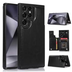 NKECXKJ Capa projetada para Galaxy S24 Ultra com compartimento para cartão de crédito, carteira de couro PU, capa protetora durável à prova de choque para Samsung S24U, mulheres, homens, 6,8