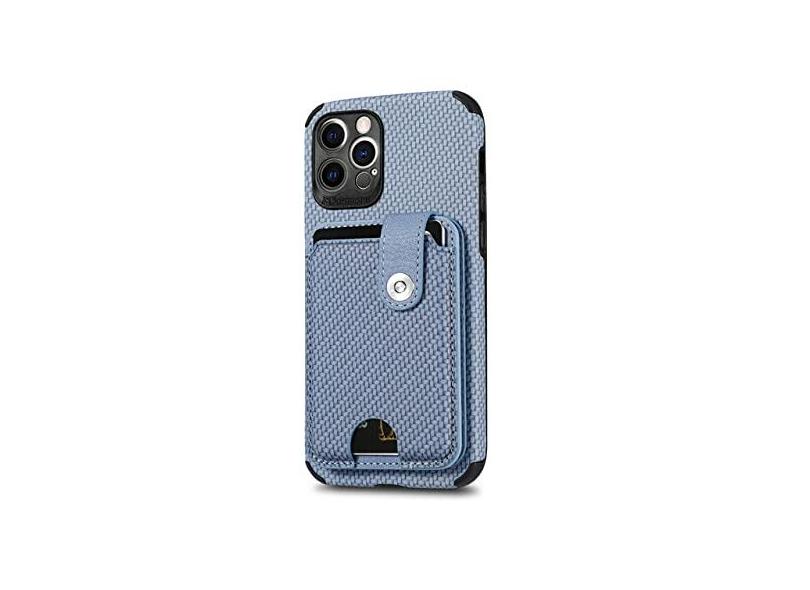 Para iPhone 13 12 Mini 14 11 Pro XS Max XR X 7 8 Plus SE 2 3 Carteira de Fibra de Carbono Estojo para Telefone Titular do Cartão de Crédito Capa de Couro PU, Azul, Para iPhone 12 Mini