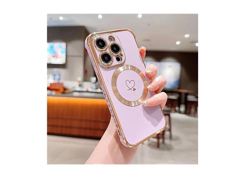 Para iPhone 14 Pro Max Luxo Magnético Bonito Chapeamento Capa de Telefone Para iPhone 11 12 13 14 Plus Capa Protetora de Lente, Roxo Claro, Para iPhone 12