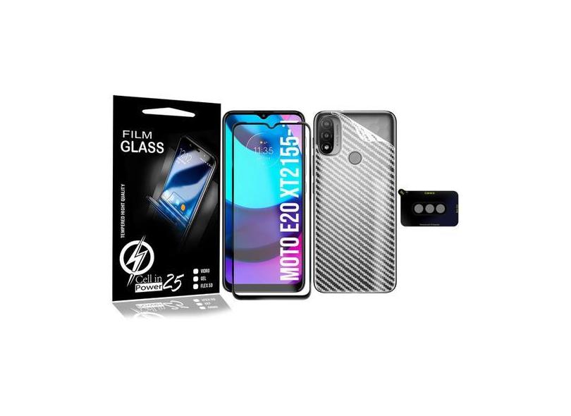 Películas 3d + Película Câmera + P Carbono P/ Moto E20 XT2155 - Cell i
