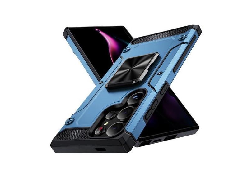 POCHY Capa fina para Samsung Galaxy S24 Ultra/S24 Plus/S24, proteção contra quedas de grau militar, invisível, giratória, suporte de anel de metal, azul, S24 Plus