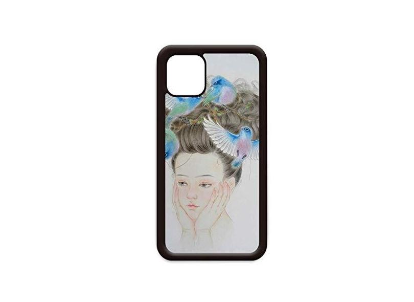 Pretty Girl Blue Bird Pintura chinesa para iPhone 12 Pro Max Capa para Apple Mini Mobile Case