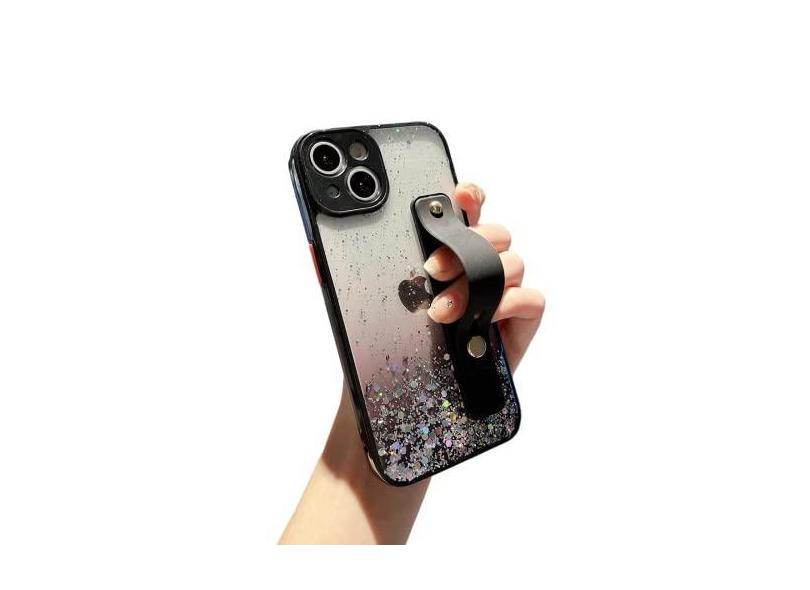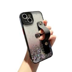 siduater Capa com suporte de alça para iPhone 13 Mini de 5,4 polegadas com suporte conversível, capa transparente com glitter brilhante macio TPU macio com alça ajustável para o dedo para iPhone 13
