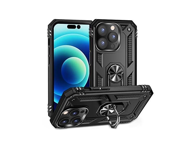 SORAKA Capa para iPhone 14 Pro com anel Capa iPhone 14 Pro Capa traseira de TPU macio com proteção contra impactos e PC rígido com placa de metal para suporte magnético para telefone em carro