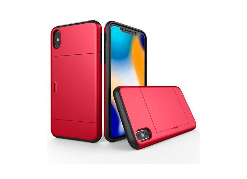 SORAKA Capa para iPhone XR com porta-cartões Capa para carteira Capa blindada para iPhone XR Capa para PC TPU de camada dupla Capa à prova de choque